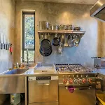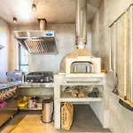 The kitchen amenities at Villa Casa Pietranera feature an electric kettle, a refrigerator, and an oven, provided in a dining area. La Bocca is a restaurant serving French dishes in the vicinity of the Porto-Vecchio accommodation.
